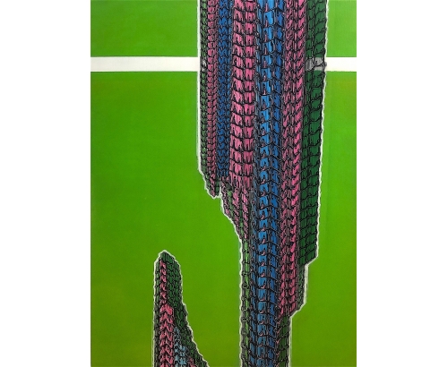 His paintings reproduce graffiti codes with omnipresent "outlines" and "highlights" that structure colorful compositions. Emancipating from the letter, organic forms conveying an idea of vertebrate networks or cellular tissues animate its supports.